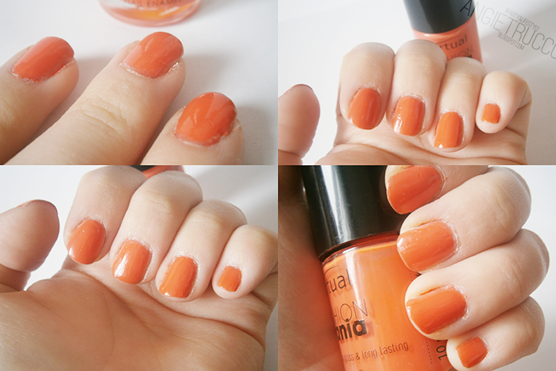 Wonder woman na stronie wygląda zupełnie inaczej. W rzeczywistości jest to pomarańcz lekko przełamany brązem. Nie jest to czysta, neonowa pomarańczka. Na zdjęciach wyszedł nieco zbyt neonowo. Lakier kryje już przy dwóch warstwach, co jest całkiem dobrym wynikiem. Schnie średnio. Jeśli komuś bardzo zależy na czasie, niestety musi użyć wysuszacza. Jednak nie jest to jakiś koszmarnie długi czas. Nie bąbluje. Trzyma się około dwóch dni, jednak po tym czasie zaczynają się ścierać lekko końcówki. Nie odpada płatami ani nic z tych rzeczy. Lakier jest całkiem niezły, choć musicie uważać, bo co kolor to inne właściwości. Mam jeszcze róż z tej serii i nie polubiliśmy się.